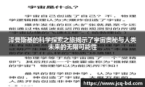 泽曼斯基的科学探索之旅是一段充满激情与智慧的旅程,展现了人类对宇宙奥秘的不懈追求和对未来无限可能性的探索。在这篇文章中,我们将从四个主要方面来探讨这一主题。首先,泽曼斯基在天文学领域的贡献揭示了宇宙的神秘面纱,让我们更加了解星空中的奇迹;其次,他在物理学上的突破拓宽了人类对自然法则的认知;第三,泽曼斯基关注人类社会发展的未来,为人类文明的发展提供新的视角;最后,他的科学探索激励着新一代科学家们继续前行。通过这些探讨,我们不仅能理解泽曼斯基个人的重要性,更能感受到他所代表的人类精神——永不止步、勇往直前。